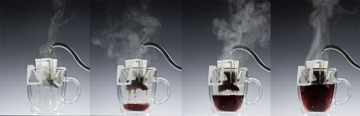 3. Pan fyddwch chi'n barod i ddechrau bragu, arllwyswch ddŵr poeth mewn llif cyson nes bod y cwpan yn 3/4 llawn. Ar ôl hynny, mae'r coffi yn disgyn o waelod yr hidlydd papur, ac rydych chi'n barod i fwynhau coffi diferu dwylo ffres rhagorol. Mae'r bag yn cynnwys 8-10g o goffi mâl, sy'n ei gwneud hi'n hawdd cael y gymhareb a'r cynnyrch dymunol.